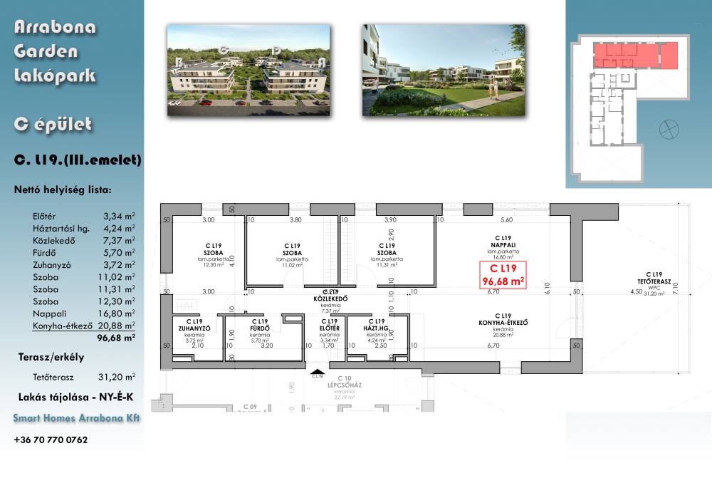 kiválasztott ingatlan: III. em. 19. (bruttó kulcsrakész ár, 2027.03.) - Arrabona lakópark Győr