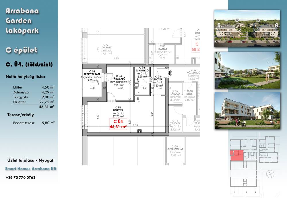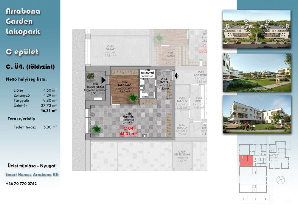 kiválasztott ingatlan: Üzlet 4 (bruttó kulcsrakész ár, 2027.03.) - Arrabona lakópark Győr